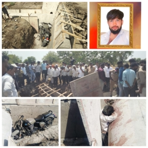 याबाबत मिळालेल्या अधिक माहितीनुसार, सुनील सीताराम शिंदे (वय अंदाजे २७ वर्षे, रा. सोनगीर, जि. धुळे) हे कळमसरे येथे लग्न समारंभासाठी कुटुंबासह आले होते. हळदीचा कार्यक्रम आटोपल्यानंतर रात्री उशिरा ते बुलेट दुचाकीने घरी परतत होते. दरम्यान, शहापूर-कळमसरे रस्त्यावरील सुरू असलेल्या फरशी पुलाजवळ अंधारात मोठा खड्डा असल्याने त्यांचा वाहनावरील ताबा सुटला आणि बुलेटसह ते थेट खड्ड्यात कोसळले. या खड्ड्यातील सिमेंट पाईपच्या कडेला ते अडकल्याने त्यांचा जागीच मृत्यू झाला. अपघाताची घटना रात्री उशिरा घडली असली तरी सकाळी संबंधित ठेकेदाराचे कर्मचारी कामावर आल्यानंतर हा प्रकार उघडकीस आला. घटनेची माहिती मिळताच मारवड पोलीस स्टेशनचे सहाय्यक पोलीस निरीक्षक जिभाऊ पाटील व त्यांच्या पथकाने तात्काळ घटनास्थळी धाव घेत पंचनामा केला. मृतदेह शवविच्छेदनासाठी ग्रामीण रुग्णालयात पाठवण्यात आला. दरम्यान, फरशी पुलाजवळ कोणतेही सुरक्षा कठडे, इशारा फलक किंवा प्रकाश व्यवस्था नसल्यानेच हा अपघात घडल्याचा आरोप मृताच्या नातेवाईकांनी केला आहे. अपघातानंतर मात्र घाईघाईने सूचना फलक व सुरक्षा उपाययोजना करण्यात आल्याचा आरोपही करण्यात आला आहे.