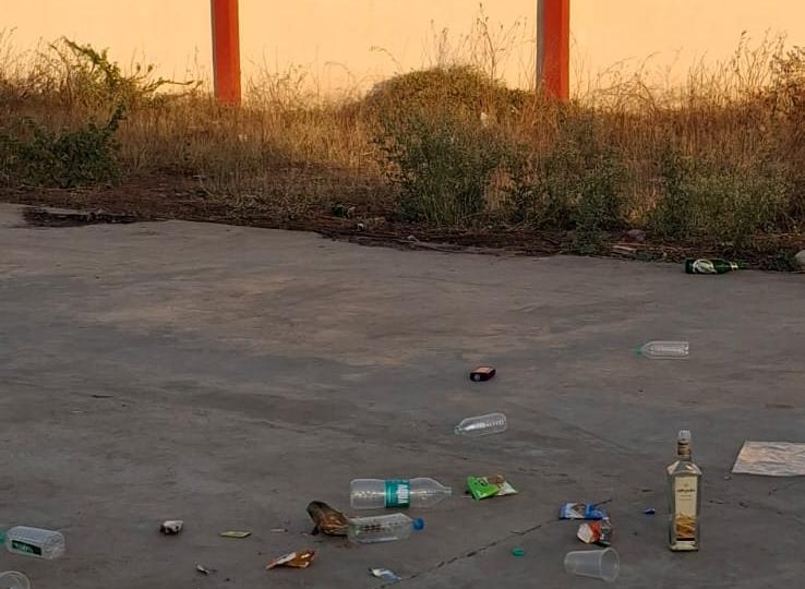 अमळनेर (प्रतिनिधी) येथील मारवड रस्त्यावरील शासकीय क्रीडा संकुल रात्रीच्या वेळी दारुड्यांचा अड्डा बनत असल्याची धक्कादायक बाब समोर आली आहे. मद्यधुंद अवस्थेत येणारे काही जण परिसरात दारूच्या बाटल्या, खाद्यपदार्थांचे रॅपर व इतर कचरा टाकून जात असल्याने सकाळी व्यायाम आणि सरावासाठी येणाऱ्या खेळाडूंना स्वच्छता मोहीम राबवावी लागत आहे.