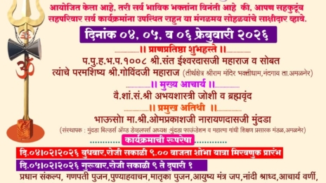 अमळनेर (प्रतिनिधी) शहरातील मुंदडा नगर २ भागात ४ ते ६ फेब्रुवारी दरम्यान सोमेश्वर महादेव मंदिराच्या प्राण प्रतिष्ठेचा सोहळा आयोजित करण्यात आला आहे....