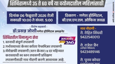 महिलांच्या आरोग्यासाठी रोटरीचा आरोग्यदायी पुढाकार अमळनेर (प्रतिनिधी) रोटरी क्लब अमळनेरच्या वतीने गर्भाशय व स्तन कर्करोग निदान शिबिराचे दिनांक ६...