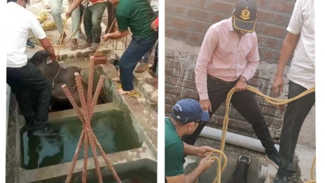 अमळनेर (प्रतिनिधी) संताजी नगर परिसरात मंगळवारी दुपारी एक वाजता सेफ्टी टॅंकमध्ये गाय पडल्याची थरारक घटना घडली. तिला वाचवण्यास अग्निशमन विभागाला यश...